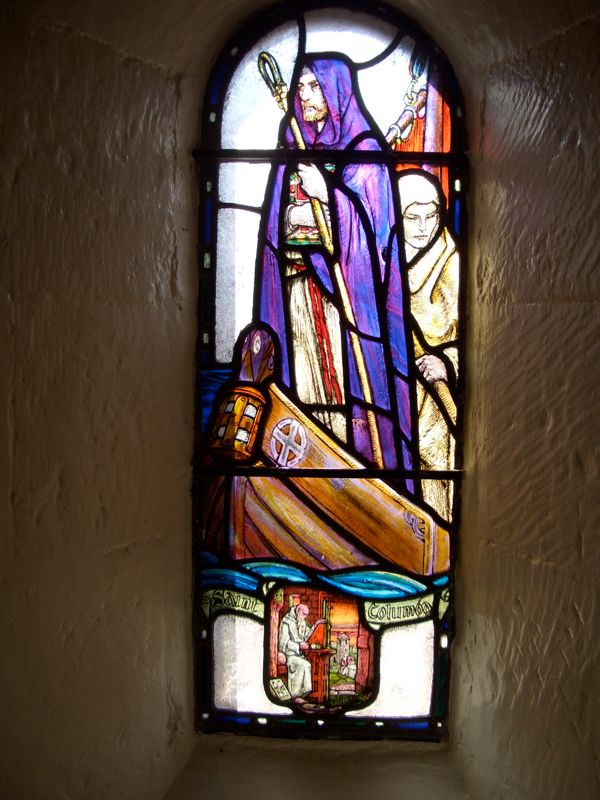St. Columba Stained Glass Window in St. Margaret's Chapel (12th cent.), Edinburgh Castle, Scotland