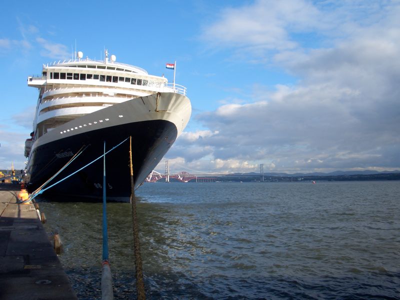 ms Prinsendam Docked at Rosyth, near Firth of Forth Railroad Bridge, Scotland