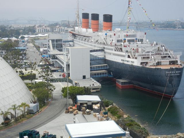 Queen Mary next to Carnival Cruise Facilities, Long Beach Harbor