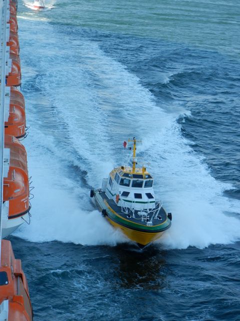 PIlot Boat racing to retrieve our pilot in Long Beach Harbor
