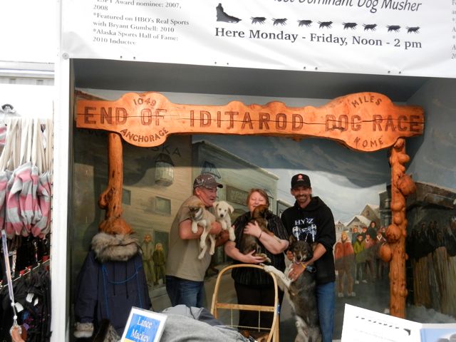 Lance Mackey, Iditarod race winner showing off some puppies. Fairbanks