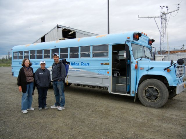 Visiting with Iris and Neal Foster (Alskan state representative) by Ft. Yukon tour bus.