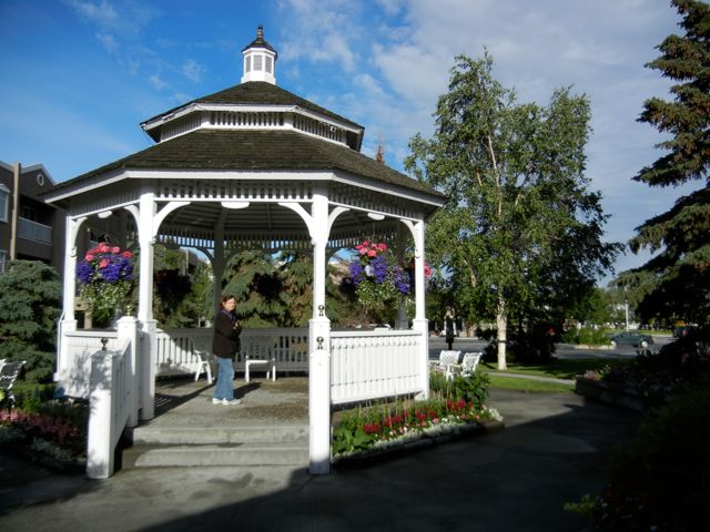 Gazebo and flowers in Wedgewood Resort, Fairbanks
