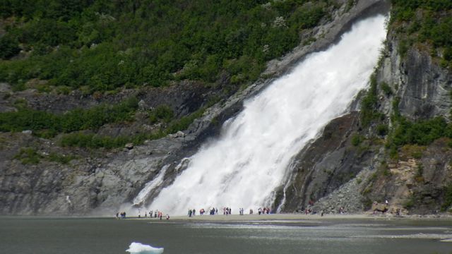 People viewing Nugget Falls, Juneau