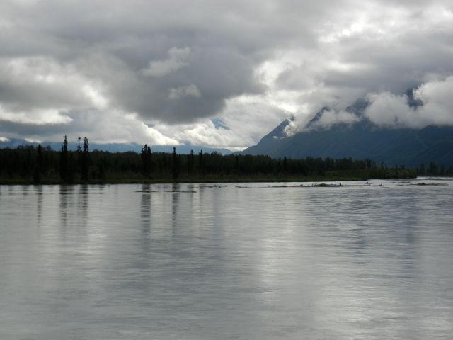 Cloudy day on the Knik River, from McKinley Express train north of Anchorage