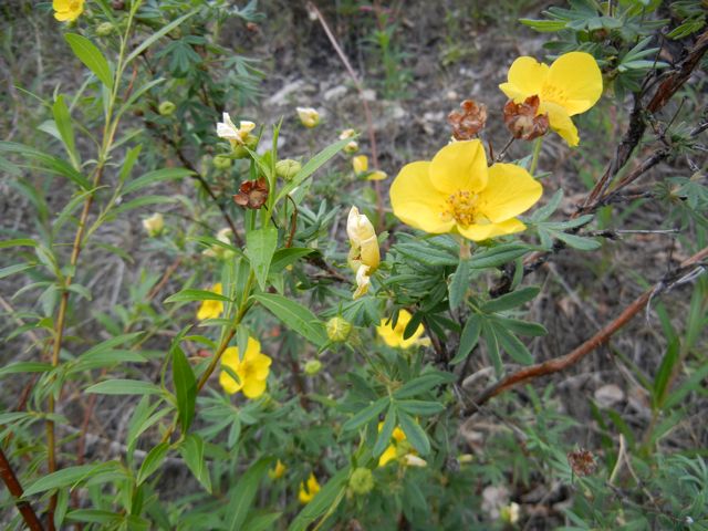 Tundra rose or bush cinquefoil (potentilla fruitocosa and now called dasiphora fruitocosa) near McKinley Chalet