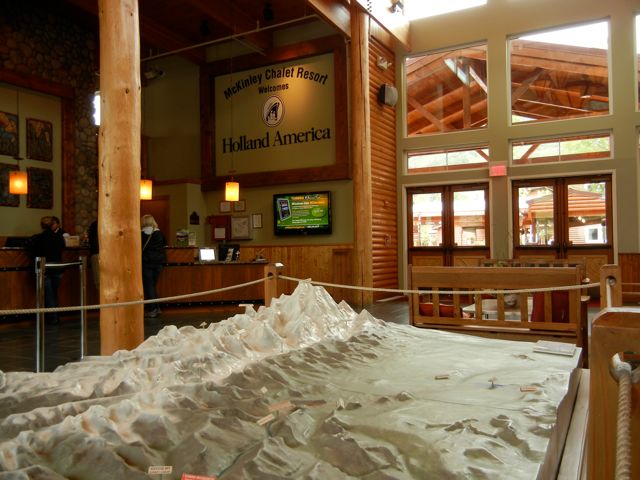 Lobby of McKinley Chalet and model of Mt. McKinley