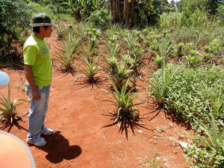 Guarani Indian leader discussing his reservation's pineapple and banana crops, Iguazu Falls, Argentina
