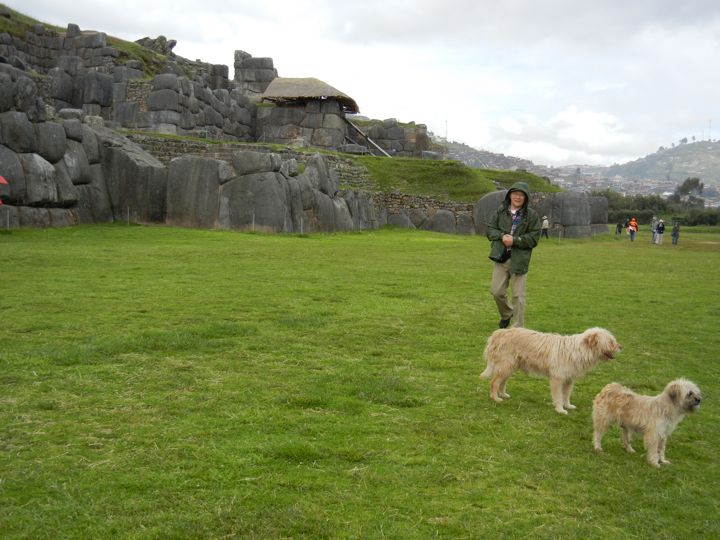 Dogs enjoying meadow at Sacsayhuaman, Cusco, Peru