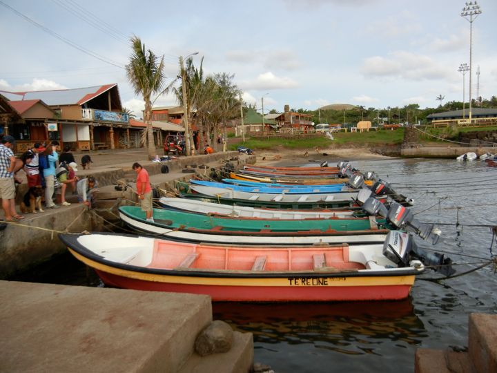 Boat harbor at Hanga Roa, principle town on Easter Island