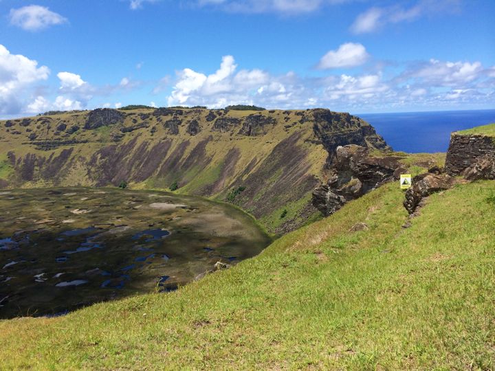 Rano Kau (crater containing fresh rainwater and marshy vegetation) at Orongo, Easter Island my video