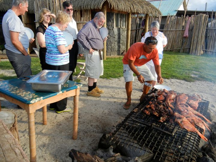 Waiting for red snapper at traditional "umu" cookout, Hanga Roa, Easter Island
