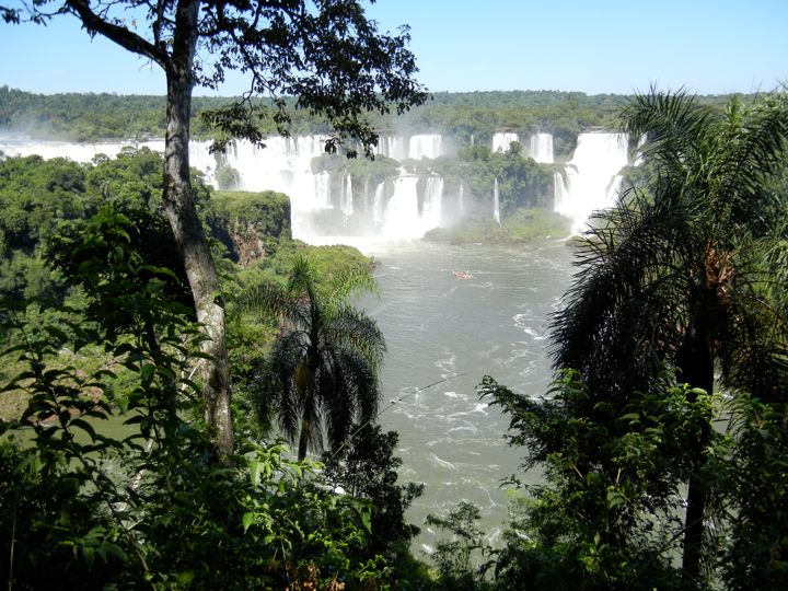 Iguazu Falls through the trees, from Brazil