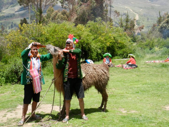 Feeding new "chief llama" chicha beer, Cuyuni community, Peru