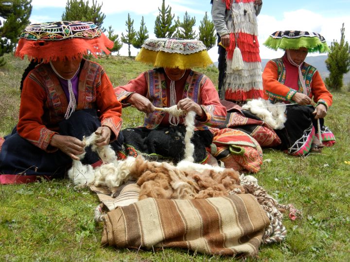 Cleaning and sorting llama wool, Cuyuni community, Peru