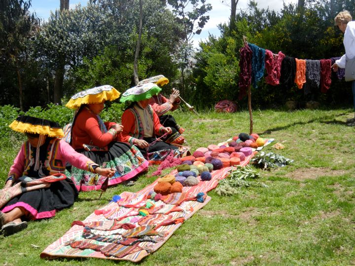 Spinning, dyeing and drying yarn, Cuyuni community, Peru