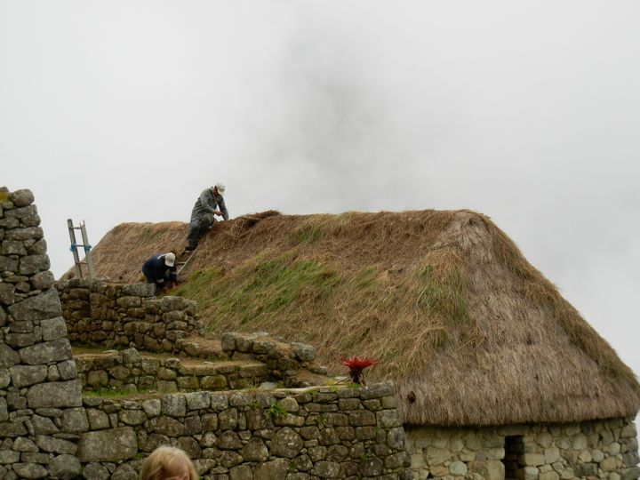 Repairing thatched roof, Machu Picchu, Peru