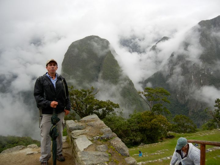 Our guide, Carlos, above Machu Picchu agricultural terraces, Peru