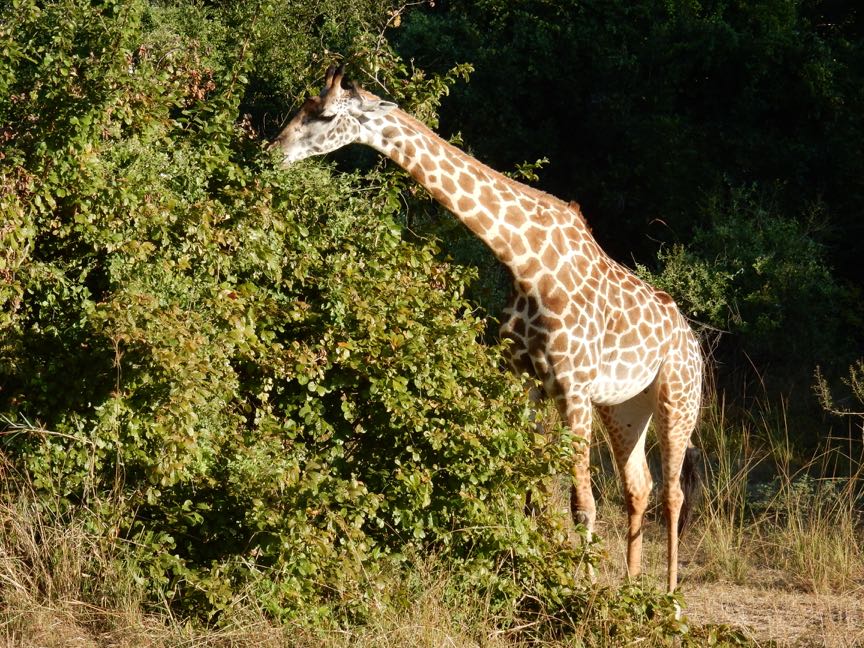 Browsing giraffe (Giraffa camelopardalis thornicrofti), South Luangwa N.P., Zambia