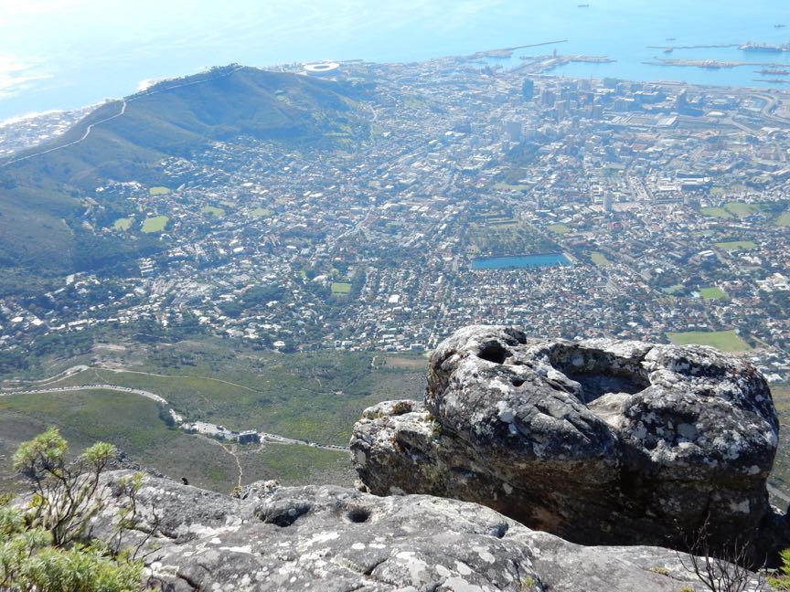 View of Signal Hill and Cape Town from top of Table Mountain (1073 meters) [ Video from Tramway Station ]
