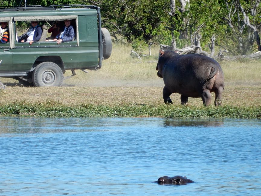 An angry hippo (Hippopotamus amphibius) chasing visitors who got too close, Botswana