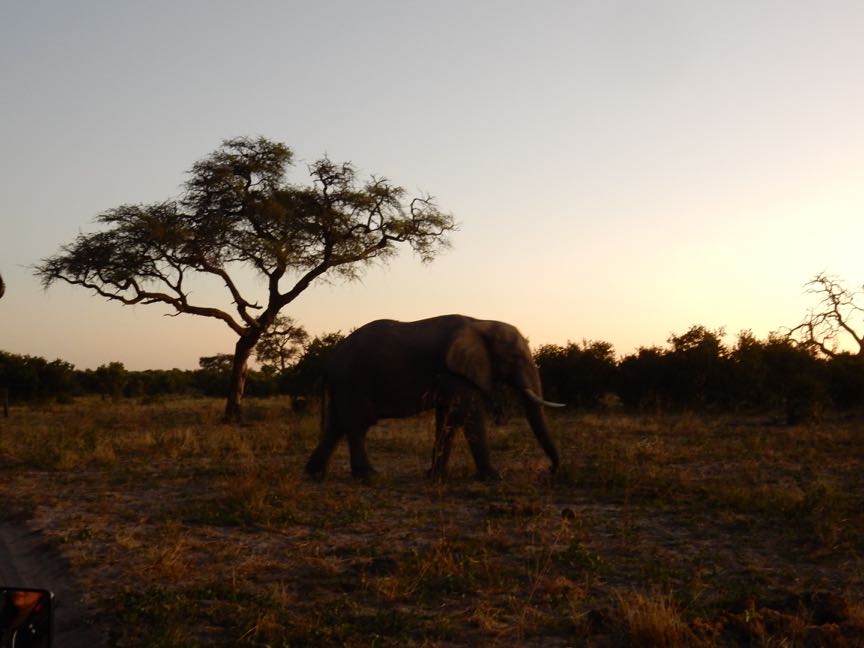 Elephant and acacia at sunset, Botswana