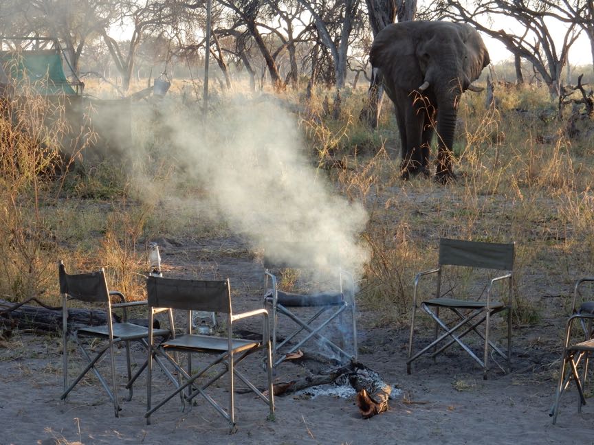 Checking out the campfire, Khwai mobile camp, Moremi Game Reserve, Botswana