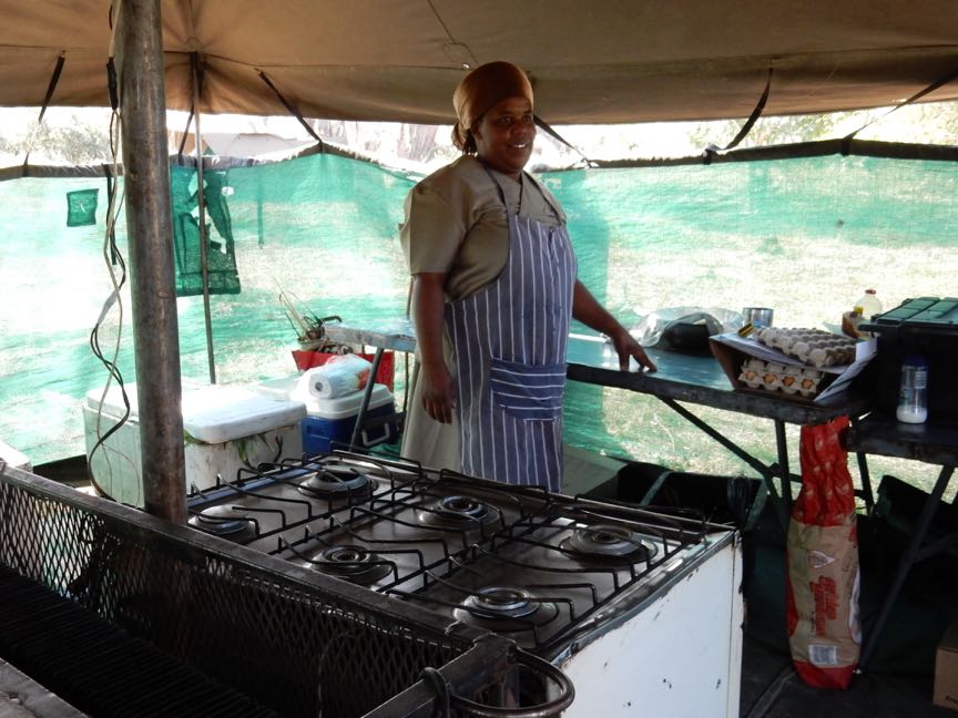 Florence Sekgwa, camp cook, in her kitchen, Khwai mobile tent camp, Botswana