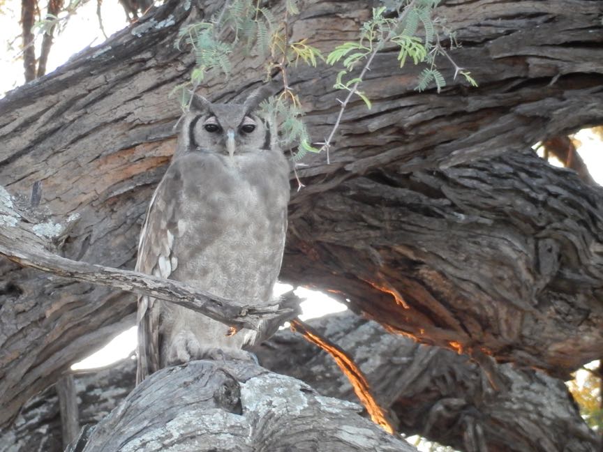 Verreaux's Eagle-Owl, or milky eagle owl or giant eagle owl (Bubo lacteus) at dusk, Botswana