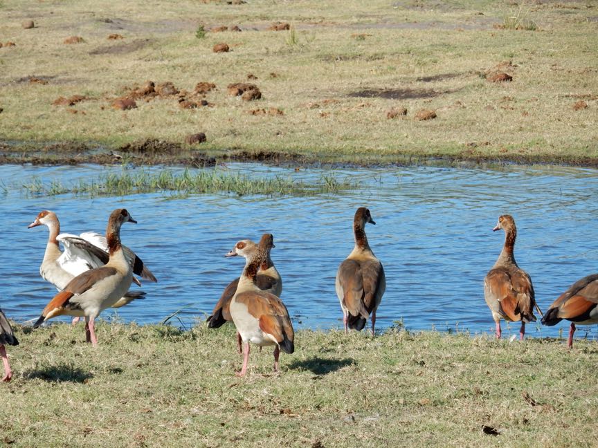 Egyptian geese (Alopochen aegyptiaca) along Chobe River, Botswana