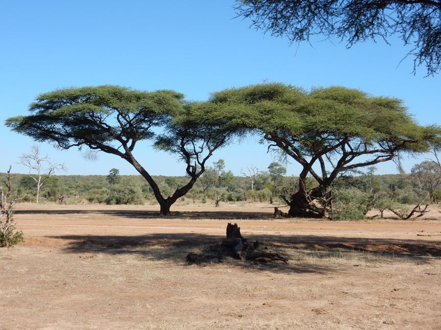 Two flat-top acacia (Vachellia abyssinica), Zambezi N.P., Zimbabwe