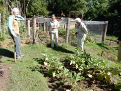 Sara showing us her fenced garden, Imbabala Lodge, Zambezi N.P., Zimbabwe