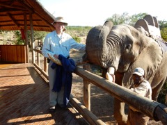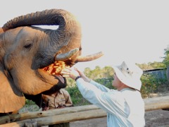 Feeding time at "Elephant Experience", Victoria Falls, Zimbabwe