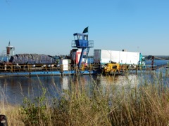 Two-truck ferry across Zambezi River at Kazungula, Botswana/Zimbabwe side