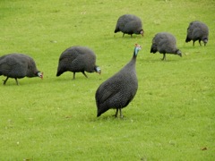 Helmeted guinea fowl (Numida meleagris) in Kirsetnbosch Botanical Garden, Cape Town [ Bird call ]