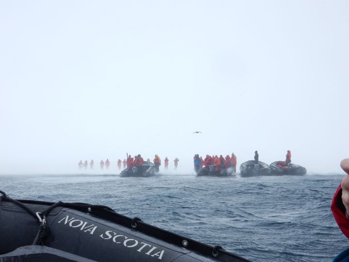 Zodiacs landing on fast ice near Snow Hill Island