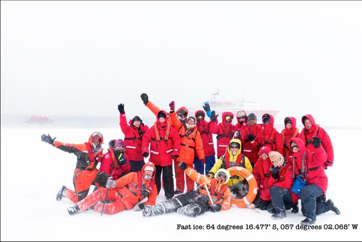 Hearty travelers on fast ice near Snow Hill Island. Photo by Renato Granieri