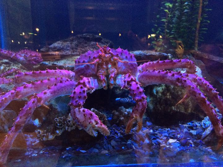 King crab (Lithodes santolla), awaiting a diner in restaurant aquarium, Ushuaia, Argentina