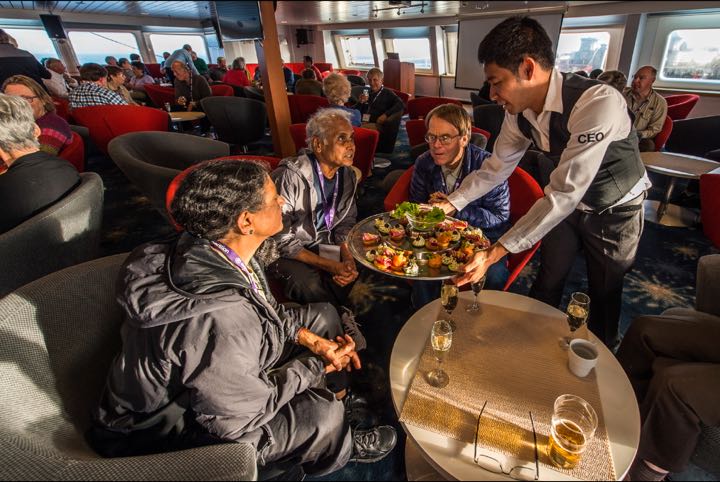 Predinner hors d'oeuvres in the main lounge, MS Expedition. Photo by Renato Granieri