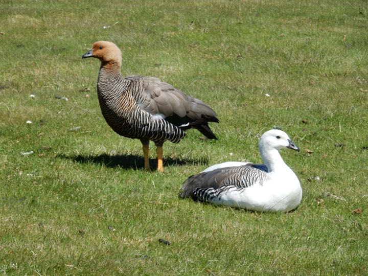 A pair of Upland geese, (Chloephaga picta), Stanley, Falklands
