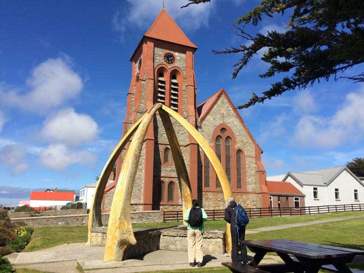 Arch of blue whale jawbones at Christ Church Cathedral (Anglican), Stanley, Falklands