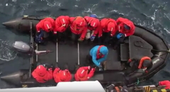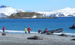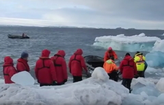 Boarding Zodiacs at edge of Fast Ice in Weddell Sea |