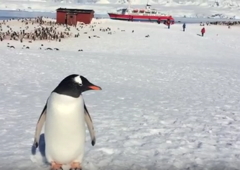 Curious Gentoo penguin on D'Hainaut Island, Mikkelsen Harbor |