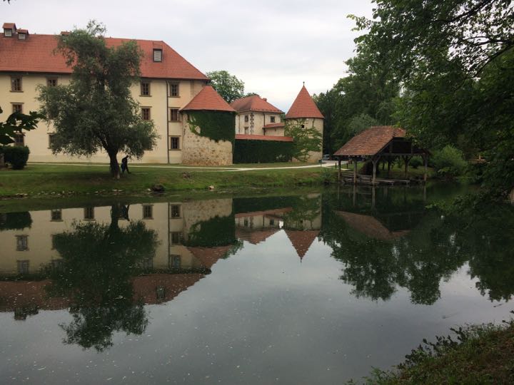 Otocec Castle (now hotel) on an island in the Krka River, Slovenia