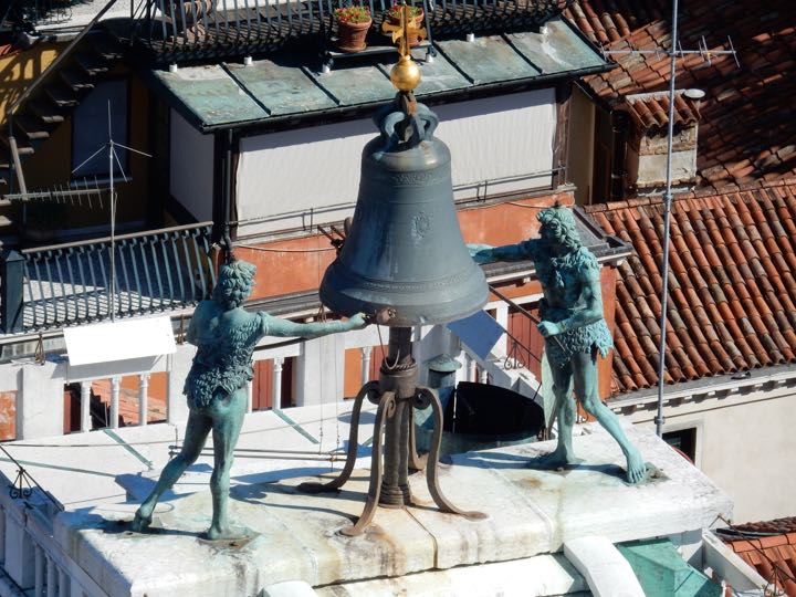 Bell ringers on top of San Marco Cathedral, from Campanile, Venice, Italy