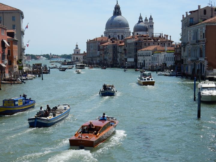 Boat traffic on Grand Canal near Basilica of Santa Maria delle Salute, Venice, ItalyVideo from Water Taxi