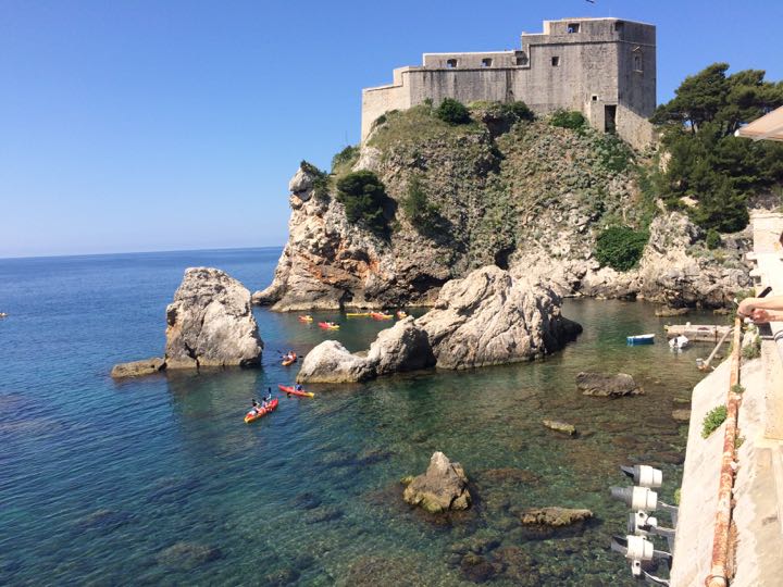 Kayakers near Fort Lovrjenac (St. Lawrence Fortress) , Dubrovnik, Croatia