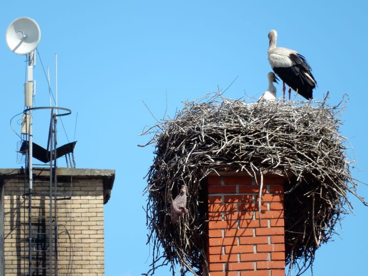 A European white stork (Ciconia ciconia) nesting in Novi Sad, Serbia