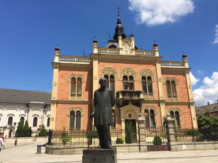 The statue of Jovan Jovanović Zmaj (poet and physician) outside biship’s palace, Novi Sad, Serbia