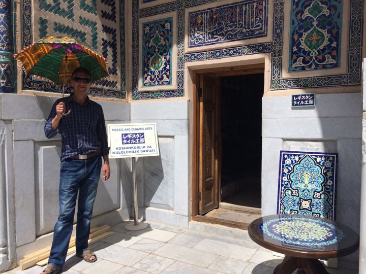Potter selling his products at Registan Square, Samarkand, Uzbekistan